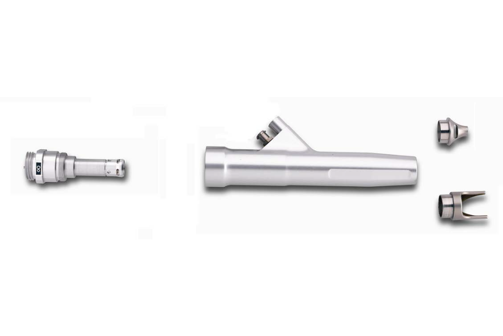 The 5” handpiece has 4 interchangeable bodies – straight, straight with backstop, curved at 90⁰ and curved at 120⁰.